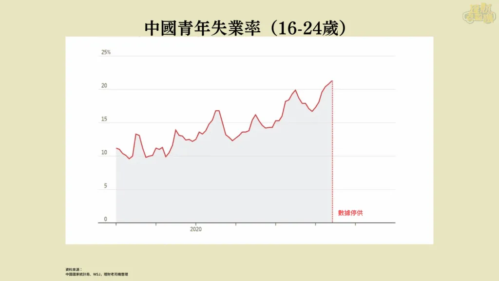失業率最能反映一國之經濟狀況,2023 年中,中國官方表示青年失業率為 21.3%,引起中國民間反彈,認為官方刻意壓低數據,當時北京大學經濟學家張丹丹公開發表,稱她認為中國的實際青年失業率可能高達46.5%,緊接著,中共當局就宣佈停止發布青年失業率,並表示需要重新檢視計算方式。去年 4 月,外國投資者在短時間內拋售超過144.6億人民幣中國股票後,也讓交易中國 A 股的上海及深圳交易所,宣佈不再提供外國投資者資金流入和流出的即時數據。