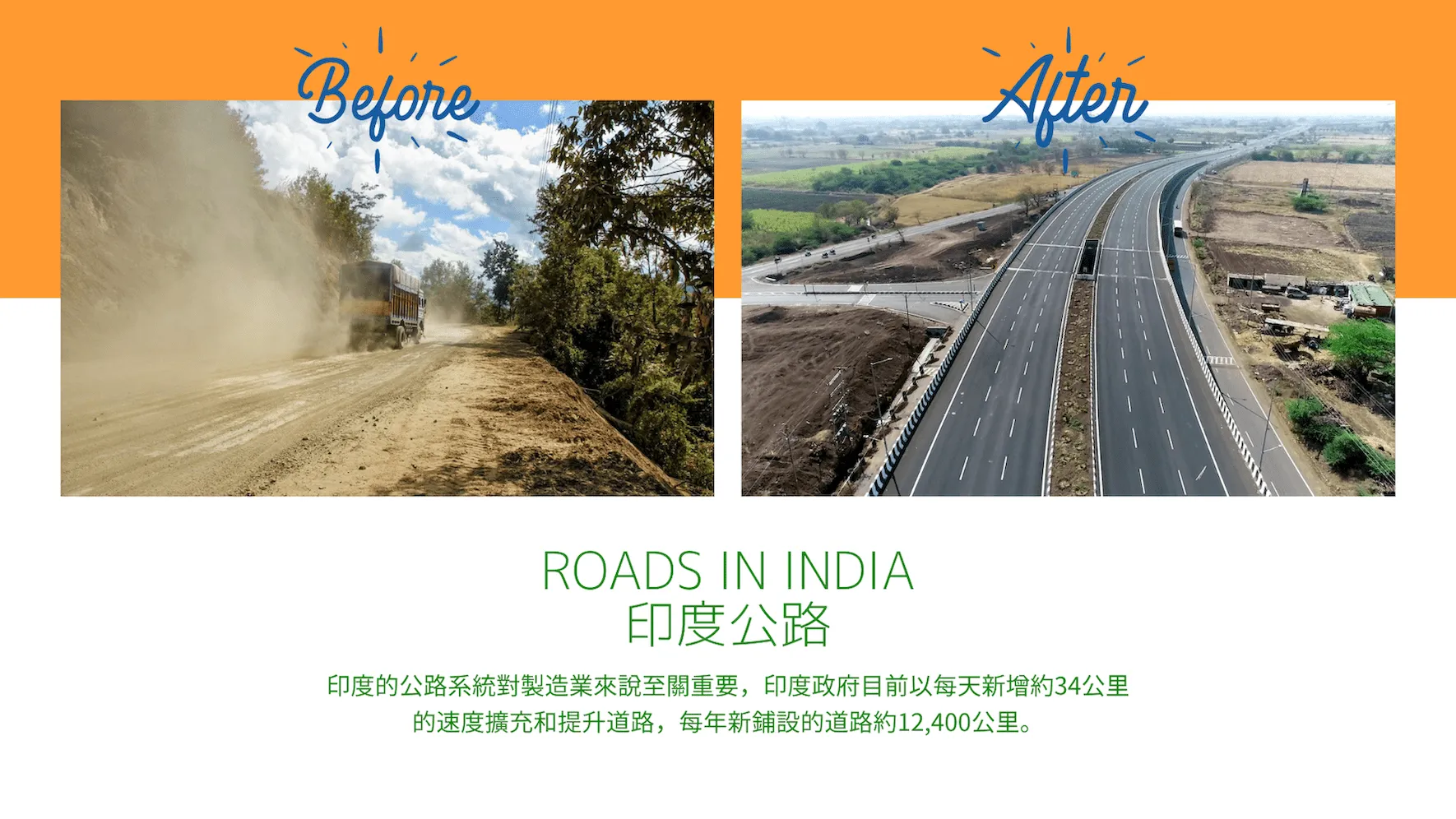 除此之外,印度過往的基礎建設較為落後,許多地區面對交通運輸不便、電力建設不足等然工業與投資卻步的狀況。但隨著莫迪上台之後每年不斷增加基礎建設支出的預算,發電容量也不斷增加後,所有重點發展的工業區域,基建方面的問題都已解決。