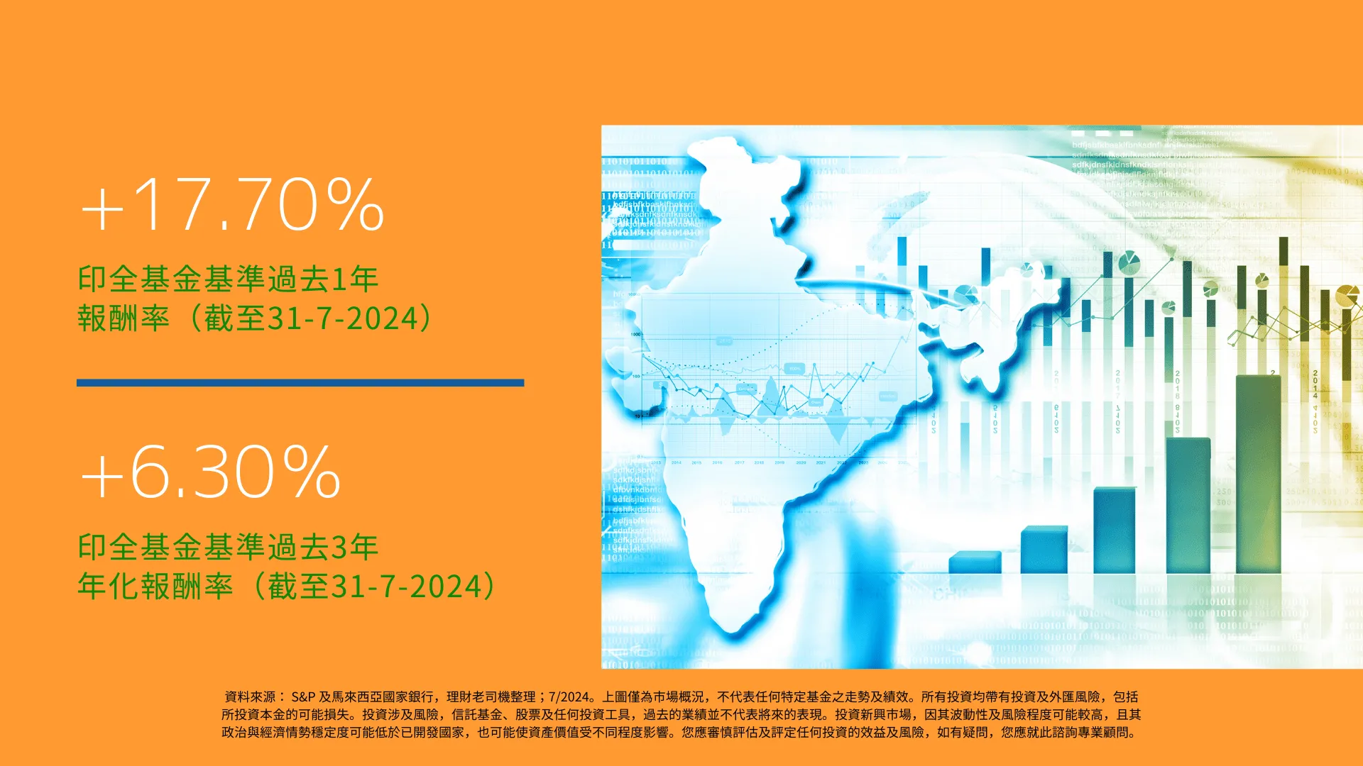 資料來源: S&P 及馬來西亞國家銀行,理財老司機整理;7/2024。上圖僅為市場概況,不代表任何特定基金之走勢及績效。所有投資均帶有投資及外匯風險,包括所投資本金的可能損失。投資涉及風險,信託基金、股票及任何投資工具,過去的業績並不代表將來的表現。投資新興市場,因其波動性及風險程度可能較高,且其政治與經濟情勢穩定度可能低於已開發國家,也可能使資產價值受不同程度影響。您應審慎評估及評定任何投資的效益及風險,如有疑問,您應就此諮詢專業顧問。